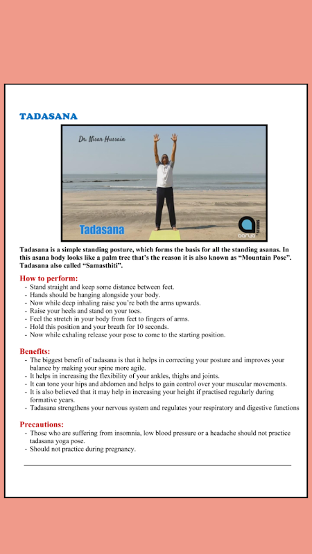 Podstawowa aplikacja do jogi zawiera 21-dniowe wskazówki dla początkujących, jak rozpocząć rozgrzewkę, jak wykonywać określone asany/mudry, korzyści z tych konkretnych asan/mudr, a także wymagane środki ostrożności. Służy jako internetowa książka informacyjna na temat działalności.