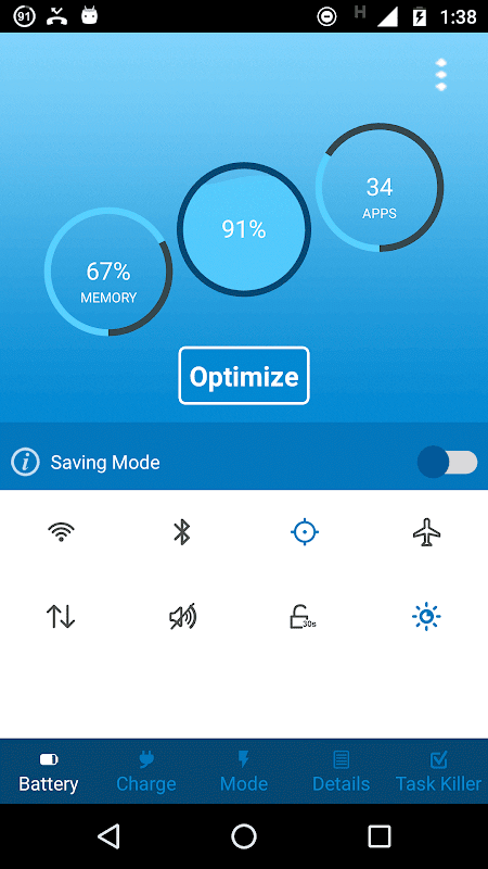 Battery Saver & Task Killer app gives Best and Easy app to Save Battery Power really without making Complicated features. We have included Task Killer to the latest Mobile and Devices too. So you can easily use it in latest OS version in you mobile.