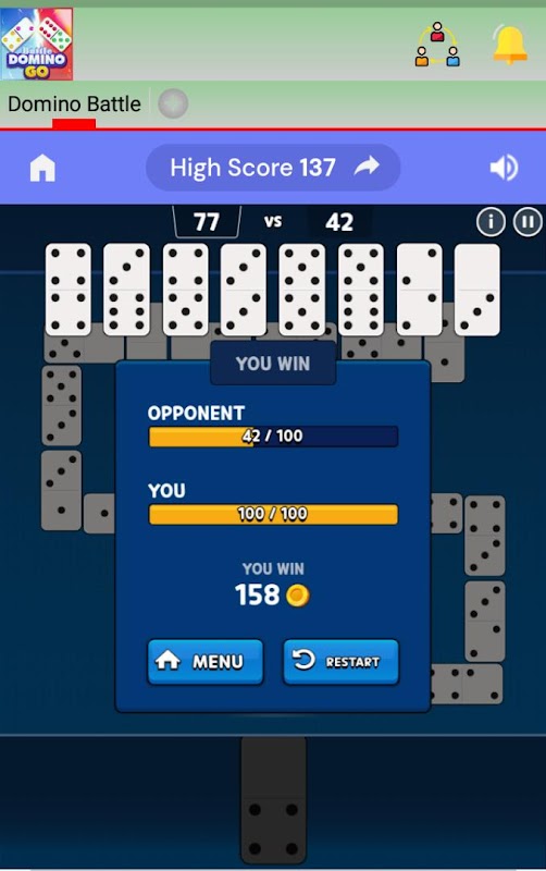 Dominos Battle to świetna gra dla dwóch graczy w domino, nowa wersja klasycznej gry planszowej zwanej również Dominos, Domino, Bones lub Dominó!