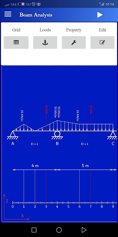Możesz wprowadzać i edytować geometrię, siły, podpory, przypadki obciążeń itp. Wyniki obliczeń są wykonywane natychmiast.