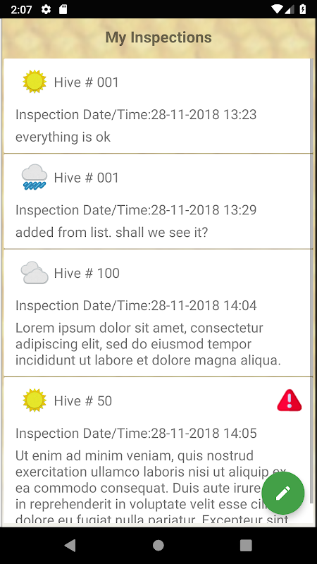 Podczas korzystania z aplikacji, biorąc pod uwagę warunki panujące w pasiece, możliwe jest wprowadzanie informacji poprzez dokonywanie wyborów z listy wielokrotnego wyboru, a nie poprzez pisanie jak najwięcej. Zwiększy to zarówno prędkość, jak i zapewni spójne informacje.