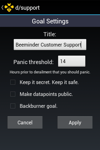 Beeminder sprytnie łączy samokierująca i zachęt pieniężnych, które pomogą Ci trzymać się swoich celów. Ci zastaw (prawdziwe pieniądze), aby zachować wszystkie swoje punkty danych na Yellow Brick Road to swój cel i jeśli zgaśnie utwór, płacisz swój zastaw.