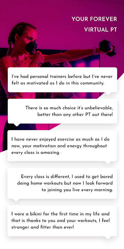 Możesz dołączyć do zupełnie nowego treningu z Belle na żywo każdego ranka z dowolnego miejsca lub wybrać z ogromnej biblioteki treningów na żądanie (zapisanych treningów na żywo), od HIIT, Sculpt i Cardio po Mobility i Pilates.