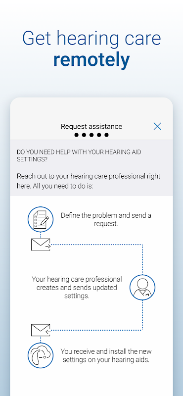 • Korzystaj ze zdalnej opieki Beltone Remote Care: poproś o pomoc w zmianie ustawień aparatu swojego specjalisty protetyka słuchu aby otrzymać nowe ustawienia i aktualizacje oprogramowania.