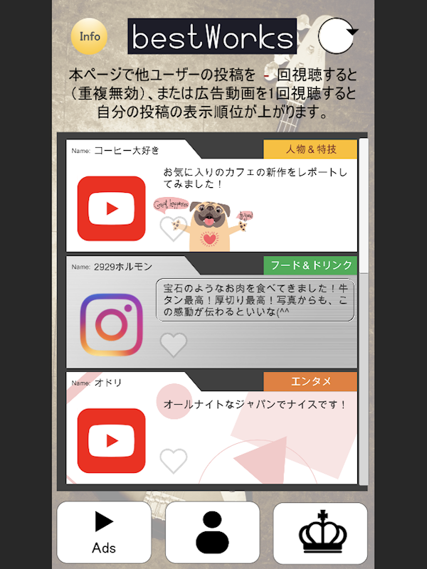 ④その週に投稿された各投稿のGood数を集計し、上位の投稿をランキングページに掲載します!