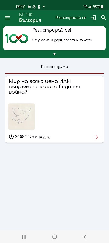 BG100 to aplikacja mobilna służąca zaangażowaniu publicznemu, która łączy aktywne osoby ze sprawami mającymi wpływ na społeczeństwo.