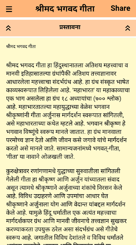 Śrimad Bhagavad Gita jest teraz dostępny w języku Marathi z łatwym do zrozumienia znaczeniem. Naszym celem jest zapewnienie łatwego dostępu do „Śrimad Bhagavad Gita” wszystkim ludziom, którzy chcą ją przeczytać, przestudiować i śledzić.