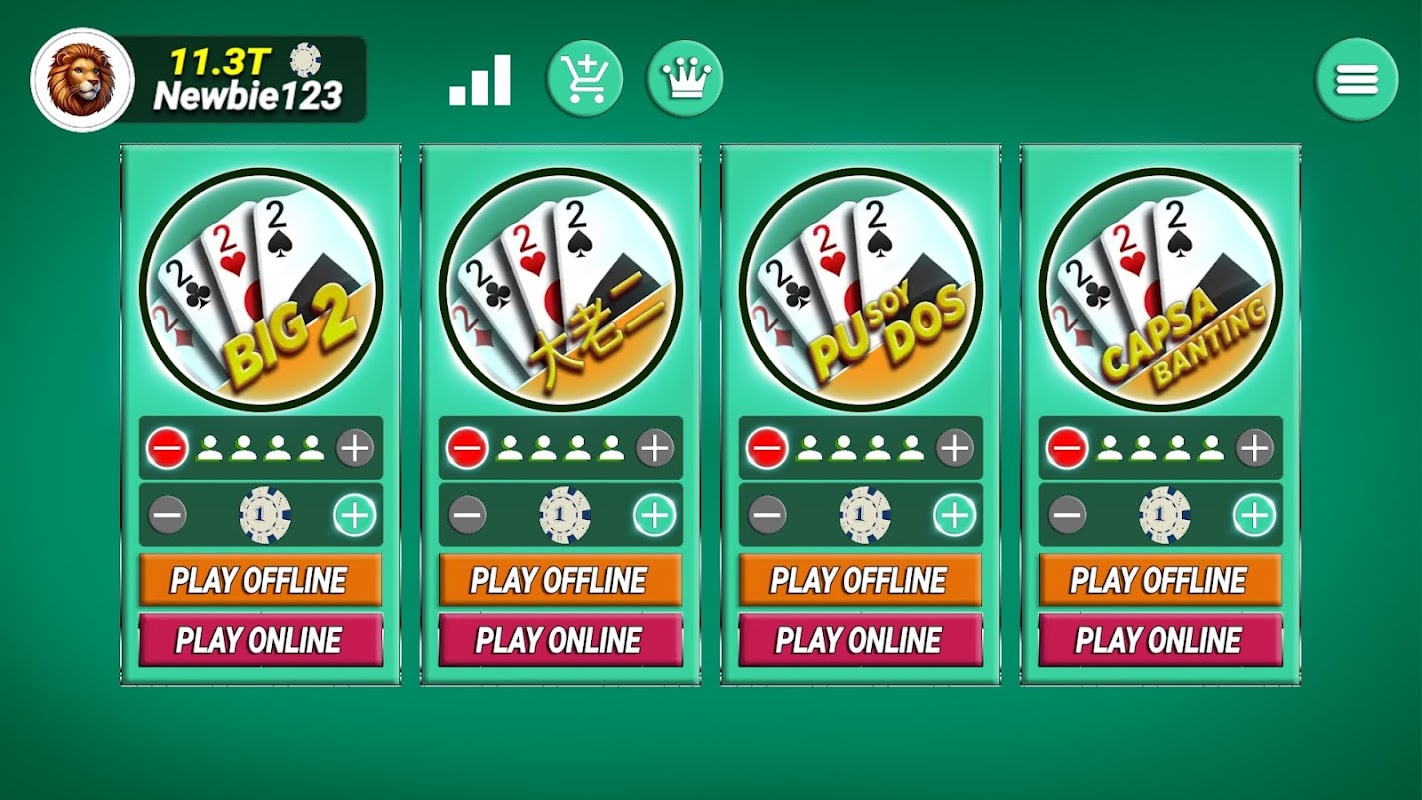 - Tryb offline: Ciesz się rozgrywką offline w Big 2 i Big Two z inteligentnymi przeciwnikami AI, aby ćwiczyć solo w dowolnym momencie.