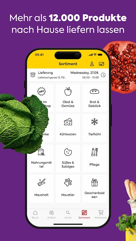 Dzięki sklepowi internetowemu BILLA oszczędzasz mnóstwo czasu, a my z przyjemnością zajmiemy się tym za Ciebie. W sklepie internetowym znajdziesz ponad 12 000 produktów. Dostarczymy Twoje zakupy bezpośrednio pod Twoje drzwi lub możesz zamówić w systemie Click & Collect – a następnie odebrać je w jednym z naszych sklepów. Możesz zapłacić online kartą kredytową, PayPalem i fakturą. Oczywiście możesz również zrealizować wszystkie kupony jö Bonus Club i kupon rabatowy w sklepie internetowym.