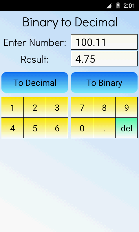 Jest to darmowy kalkulator matematyczny, który pozwala na konwersję pliku na liczbach dziesiętnych, a po przecinku do liczb binarnych.