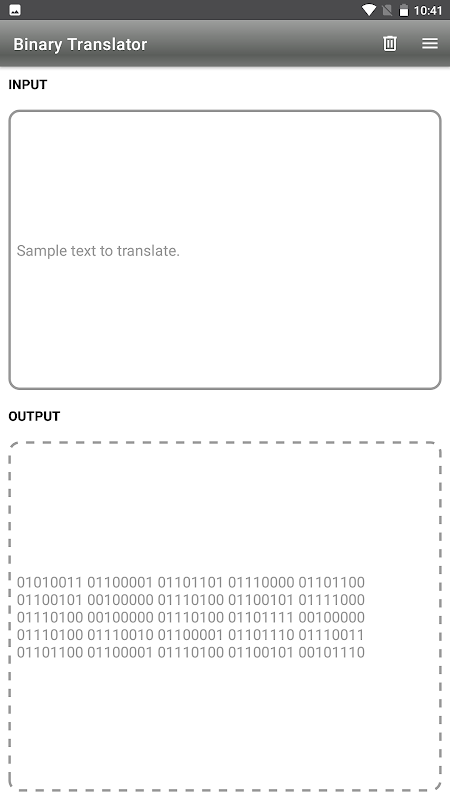 Przetłumacz zawartość wejściową na binarną lub binarną na tekst.