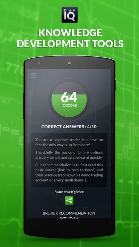 Wziąłeś udział w quizie, jesteś guru, że opcja binarna jest gotowy do zysku na każdym handel? Wielki! Jesteśmy z ciebie dumni, użyj funkcji udostępniania Apps społecznej dzielić swój wynik z przyjaciółmi. Wyzwać ich do opcji IQ quizie off i zobaczyć, który posiada najwyższy Binary Option IQ!