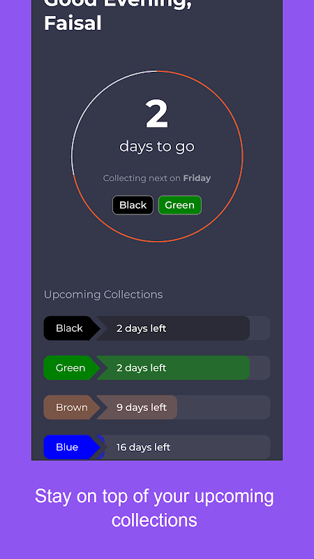 🗓️ Inteligentne przypomnienia: Bindicator wysyła inteligentne przypomnienia bezpośrednio na Twoje urządzenie, powiadamiając Cię z dużym wyprzedzeniem o nadchodzących dniach wywozu śmieci.
