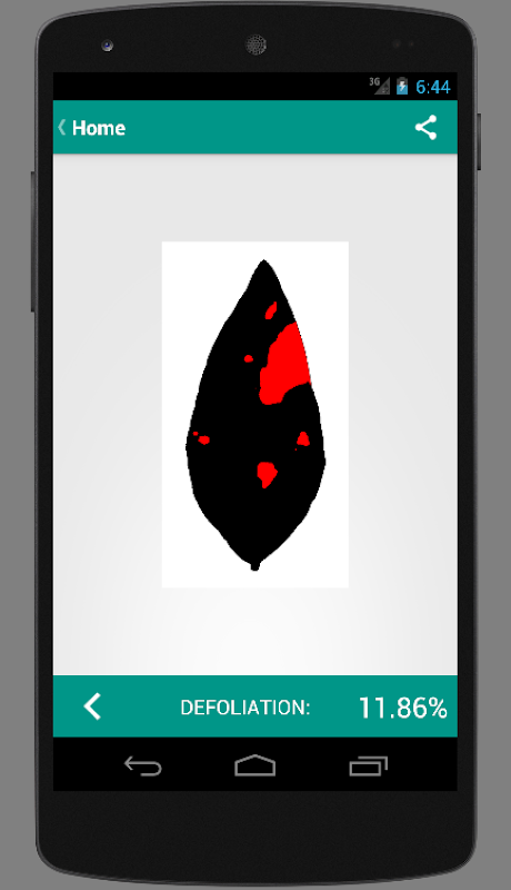 BioLeaf - Foliar Analysis ™ automatycznie identyfikuje uszkodzone obszary liści spowodowane przez rośliny owadów, a następnie ocenia procent defoliacji związany z całkowitą powierzchnią za pomocą zdjęć zarejestrowanych z telefonu lub załadowanych z galerii zdjęć.