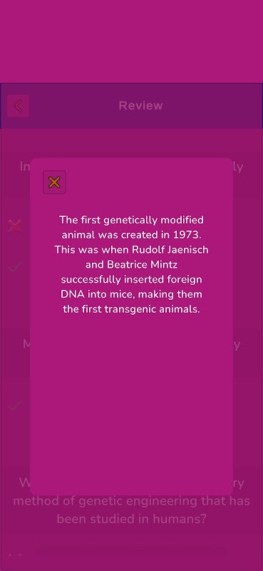Ta najwyżej oceniana aplikacja quizowa pomaga Ci uczyć się i opanowywać kluczowe koncepcje biotechnologii poprzez angażujące pytania wielokrotnego wyboru. Zrób test, popraw swoje zrozumienie i rywalizuj z innymi na całym świecie.