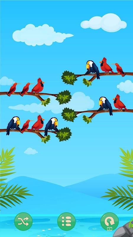 Twoim głównym celem jest zebranie ptaków tego samego koloru na gałęzi drzewa. Gdy tylko umieścisz wszystkie ptaki tego samego koloru na jednej gałęzi, odlecą.