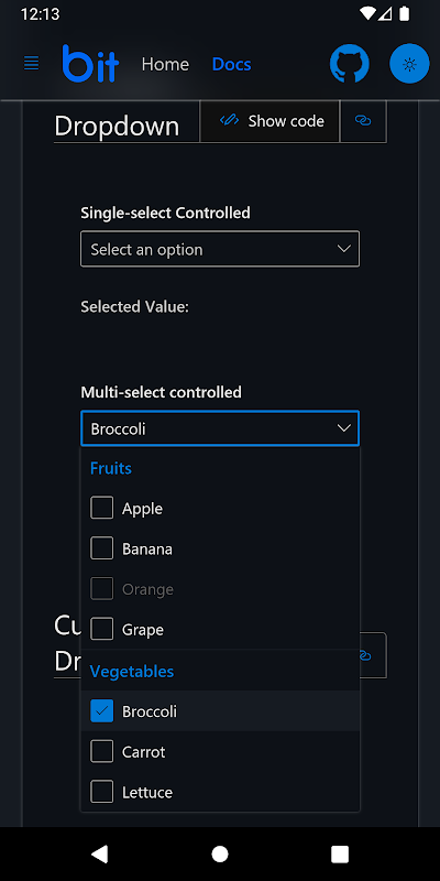 Demo komponentów interfejsu użytkownika Bit Blazor
