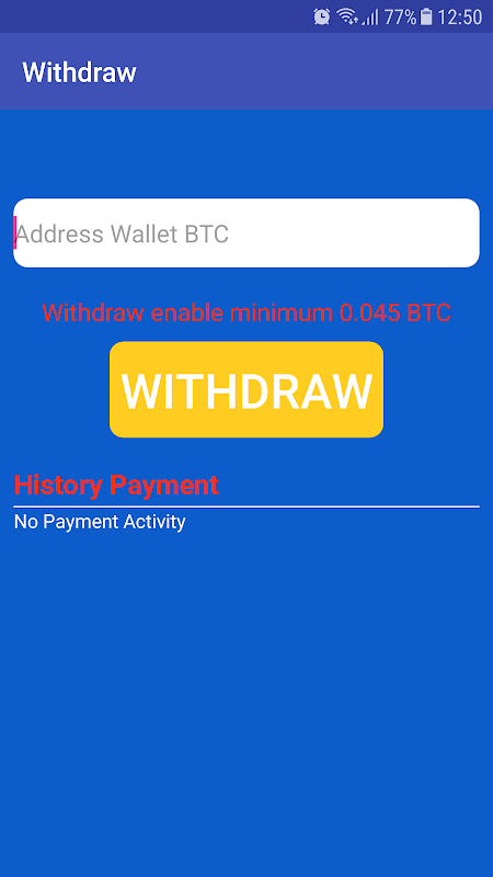 Minimum withdrawal limit is 0.045 BTC so you can receive your free Bitcoin to your wallet and keep it to invest, save, or use however you want.