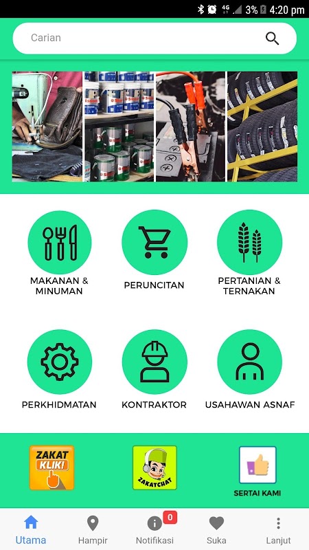 BizZakat jest aplikacją, która wymienia katalog firm i przedsiębiorców w Pahang, którzy mają rejestr płatności Zakat w Pahang zakat Collection Center.