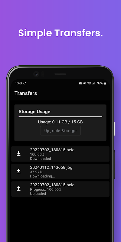 Blazed Cloud został zaprojektowany z myślą o prostocie. Żadnych niepotrzebnych dodatków, żadnych mylących funkcji — po prostu przejrzysty interfejs, który daje dokładnie to, czego potrzebujesz. Bez wysiłku przesyłaj, pobieraj i zarządzaj plikami za pomocą kilku dotknięć.