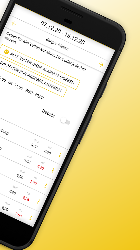 Aplikacja może służyć do porównywania czasów rzeczywistych i docelowych lub dodawania ich ręcznie. Monitor pracowników pokazuje, gdzie zawsze brakuje czasu.