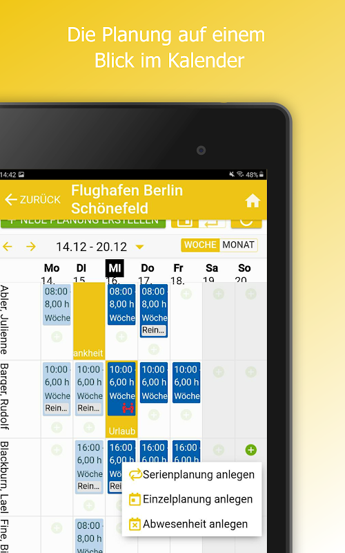 Lokalizacje (obiekty) i pracowników można tworzyć i planować za pomocą aplikacji menedżera.