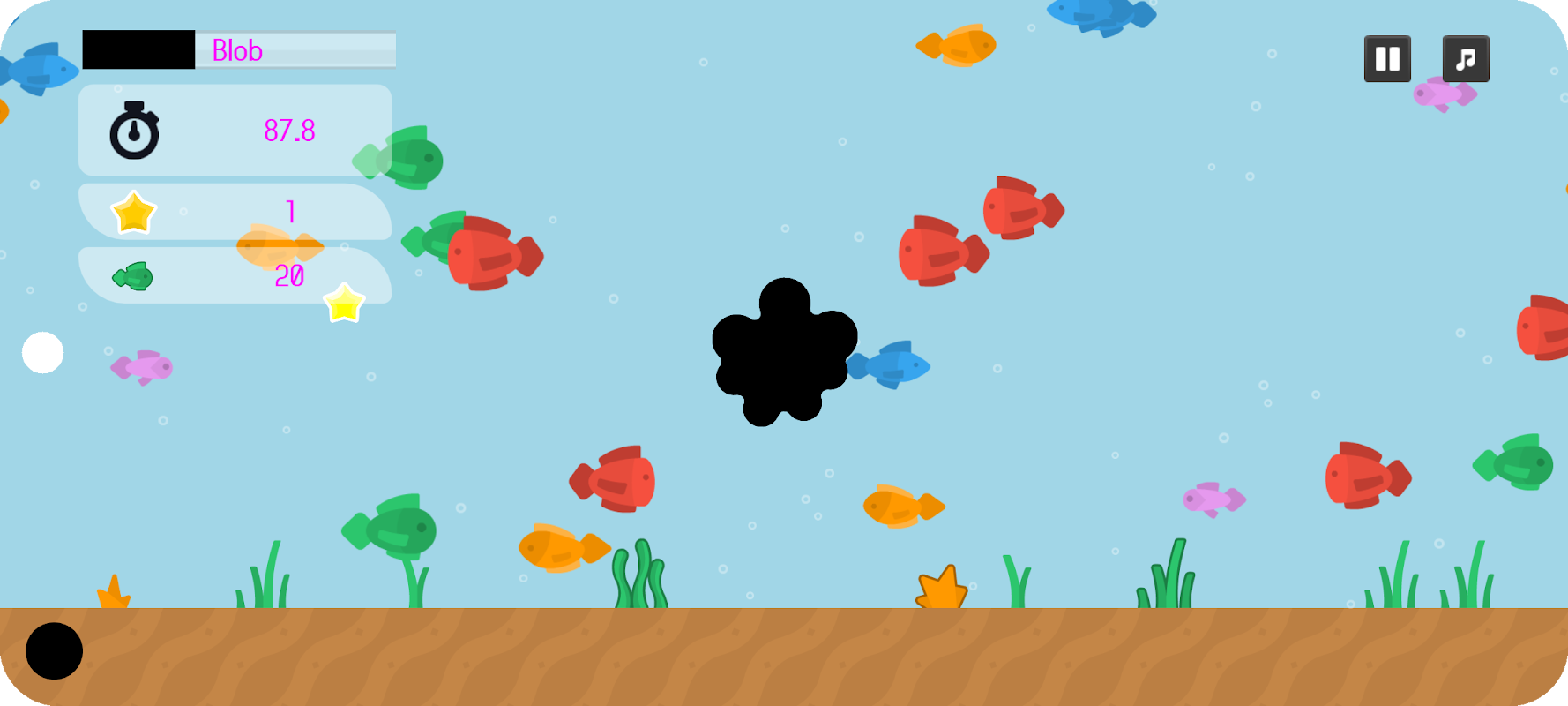 Grasz jako Blob, kosmita, który uwielbia jeść ryby. Musisz się poruszać i jeść ryby, aby utrzymać Bloba przy życiu, ale uważaj, aby nie zjeść ich za dużo.