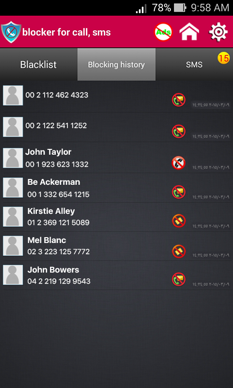 Połączenie bloker, bloker szczyci się również komunikat o kilka wygodnych opcji ustawień, takich jak zdolność do blokowania numerów prywatnych, lub wyłączyć powiadomienia.