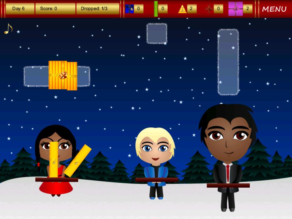 Proste gry, wystarczy dotknąć ekranu, aby upuścić prezentów! Wesołych Świąt!