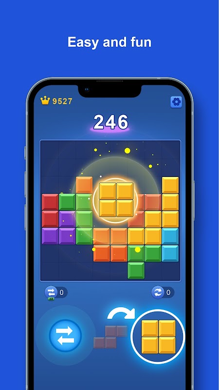 ● Gra jest darmowa i działa w trybie offline, więc możesz się nią cieszyć w dowolnym czasie i miejscu. ● Tryb klasyczny to prosta i wciągająca gra logiczna z klockami, podobna do Tetrisa, w której próbujesz wyczyścić jak najwięcej linii i pobić swój własny rekord.