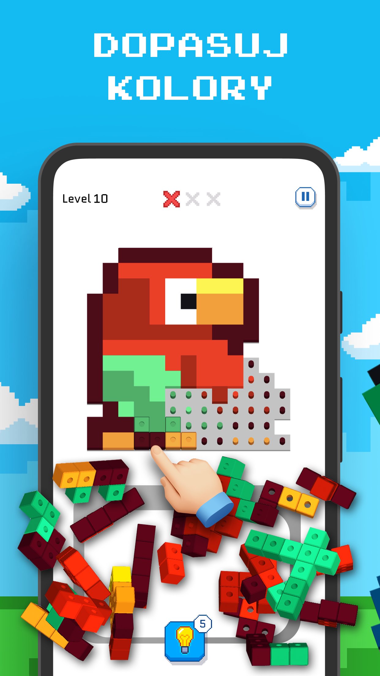 Blockin' Color przypadnie do gustu fanom klasycznego tetrisa, drewnianych łamigłówek oraz kolorowanek według numerów. Pikselowy układanka Blockin’ Color to niezwykle jasna i piękna łamigłówka, która dostarczy przyjemność każdemu miłośnikowi pikselowej sztuki.