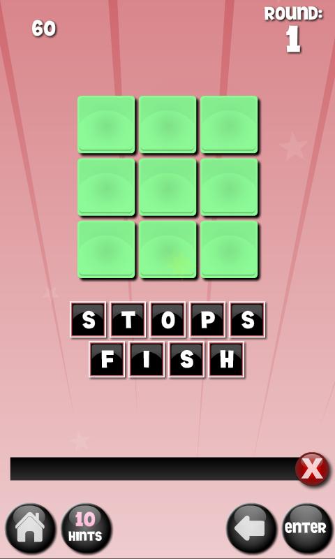 Powered by thousands of words in the English language. There are 2 to 3 words hidden within each puzzle. The boxes below the letters indicate the length of the words hidden within the letter block. Tap the letter tiles to try and decipher the words. Tap the clear(x) button or swipe in any direction to clear the word, or tap the back arrow button, or the letter tile itself, to delete a single letter.