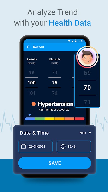 Po prostu wprowadź odczyty skurczowe i rozkurczowe wraz z datą i godziną, a aplikacja automatycznie zapisze dane do wykorzystania w przyszłości. Jest to szczególnie przydatne dla osób, które muszą regularnie monitorować ciśnienie krwi, na przykład dla osób z nadciśnieniem lub chorobami serca.