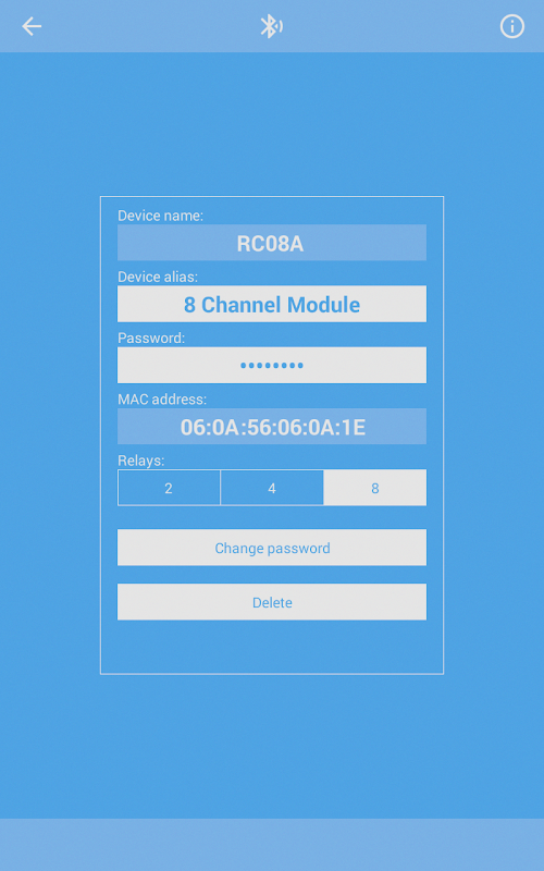 Ta aplikacja pozwala na sterowanie 2, 4 lub 8-kanałowy moduł przekaźnikowy Bluetooth BLE ze smartfonu.