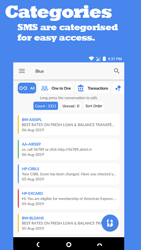 1. Messages are categorized into 3 groups for easy access.