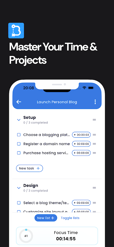 Odblokuj swój potencjał produktywności dzięki Blueprint, najlepszej aplikacji do zarządzania zadaniami i zadaniami opartej na Pomodoro. Zaprojektowany, aby pomóc Ci organizować, ustalać priorytety i śledzić swoje zadania dzięki mocy Techniki Pomodoro, Blueprint utrzymuje Cię skupionym, zmotywowanym i na właściwej drodze - niezależnie od tego, czy zarządzasz pracą, nauką, czy celami osobistymi.