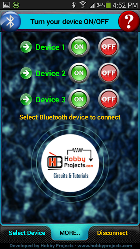 6. Kiedy naciśniesz przycisk ON dla urządzenia 3 wysyła danych "C" do modułu Bluetooth podłączony w obwód. Mikrokontroler włącza przekaźnika Urządzenie 3, gdy wykryje, "C".