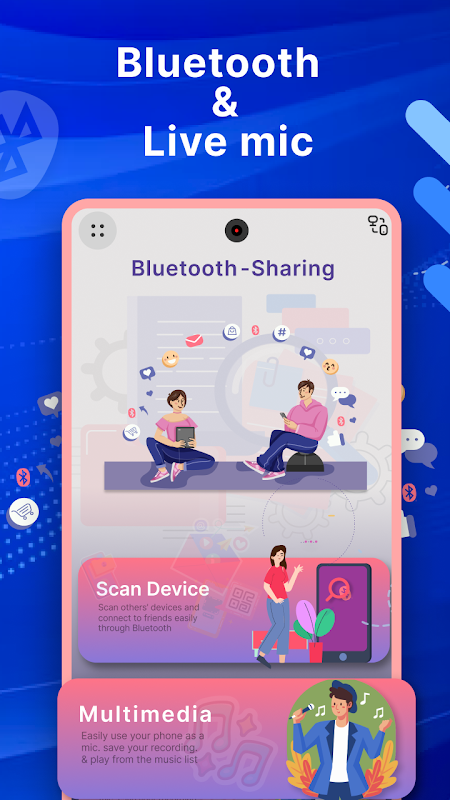 Bluetooth Auto Connect BT Pair oferuje kilka wyjątkowych funkcji odtwarzacza audio, mikrofonu na żywo i dyktafonu. Połącz się z głośnikiem i korzystaj z mikrofonu na żywo bezpośrednio w aplikacji Bluetooth Auto Connect.