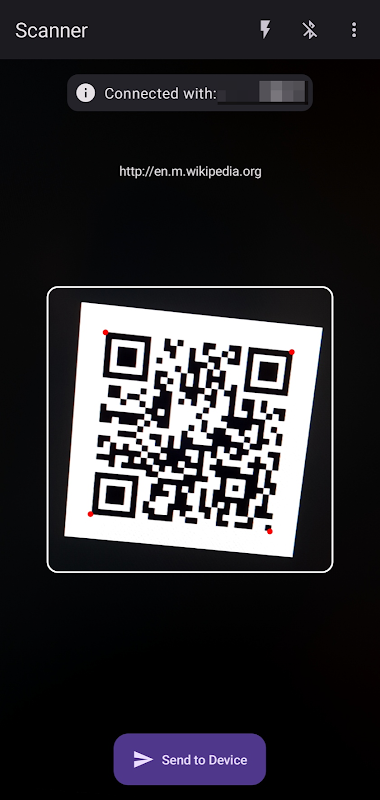Dzięki tej aplikacji możesz zamienić swój telefon w mobilny skaner kodów QR/kreskowych i wysłać wartość dowolnego kodu w postaci tekstu do podłączonego urządzenia Bluetooth.