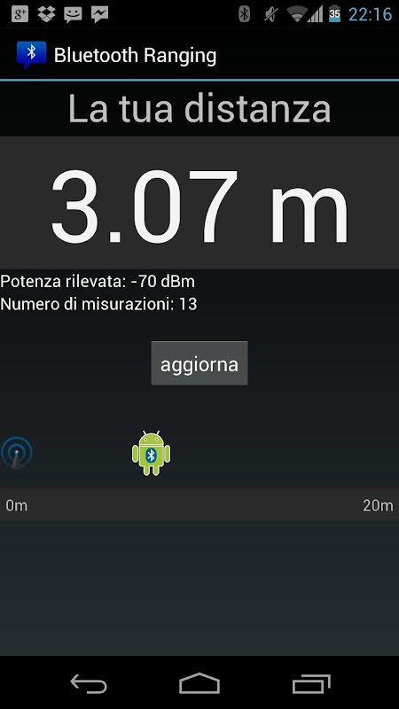 The application's aim is to demonstrate how to exploit technologies created with different purposes, to obtain location information: in this case we're using BlueTooth tecnology.