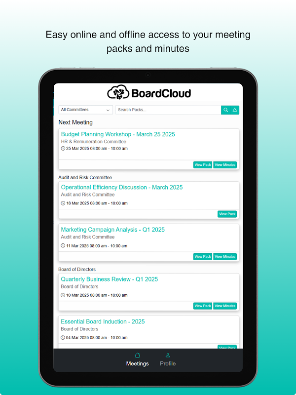Dostęp offline: pobieraj pakiety spotkań bezpośrednio na swoje urządzenie, aby przeglądać je w trybie offline, dzięki czemu zawsze będziesz przygotowany, niezależnie od łączności.
