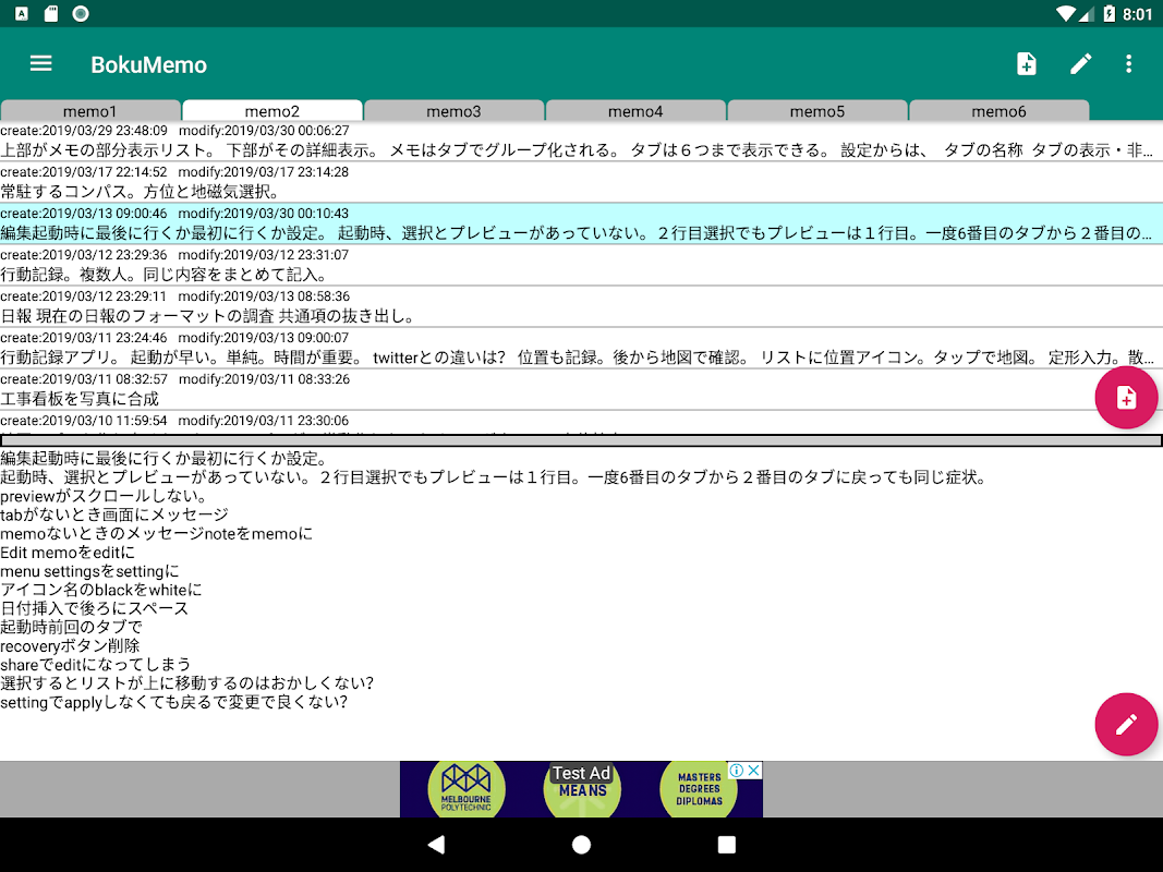 BokuMemo to aplikacja notatki stworzona dla Androida. Notatka może być pogrupowana według kart, a zawartość wybranej notatki może zostać wyświetlona.