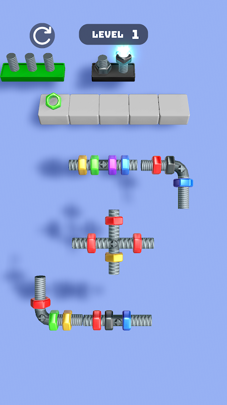 Każdy poziom przedstawia nowy zestaw śrub i nakrętek, splecionych w złożone formacje. Twoim celem jest strategiczne odkręcenie i dopasowanie odpowiednich par, upewniając się, że każda nakrętka jest obracana we właściwej kolejności, aby pasowała do odpowiedniej śruby. Gdy znajdziesz idealne dopasowania, nadmiar elementów odpadnie, odsłaniając czysty plan i torując drogę nowym łamigłówkom.