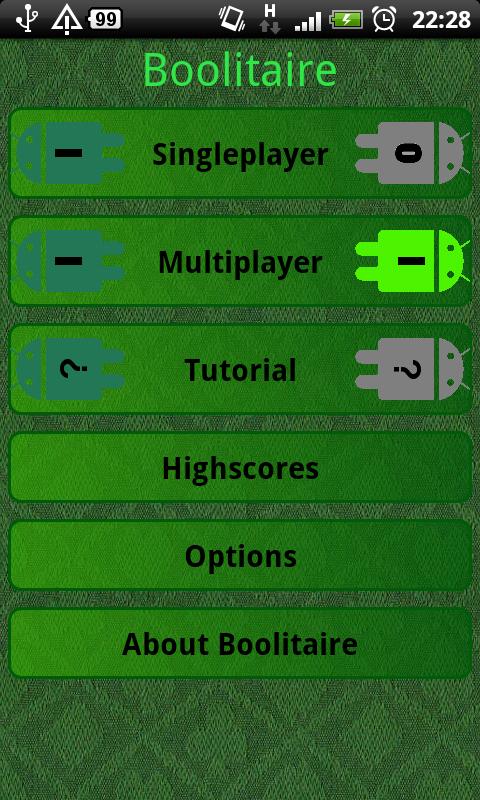 Boolitaire to strategiczna gra karciana oparta na logice Boole'a. Zaczynając od danego ciągu bitów musisz utworzyć piramidę bramek logicznych. Osiągasz to poprzez umieszczanie bramek logicznych (reprezentowanych przez karty). Bramka logiczna wykonuje operację Boole'a na dwóch wejściach i zwraca liczbę binarną. (1 lub 0)