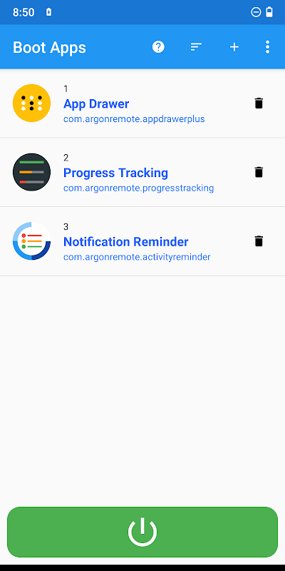 Ta aplikacja umożliwia zarządzanie listą aplikacji otwieranych automatycznie przy uruchomieniu (po włączeniu lub ponownym uruchomieniu smartfona).