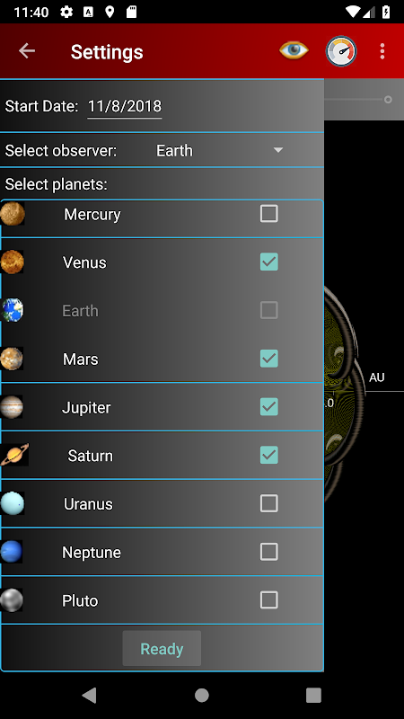 BoPlanets pokazuje położenie planet w stosunku do obserwacji planety.