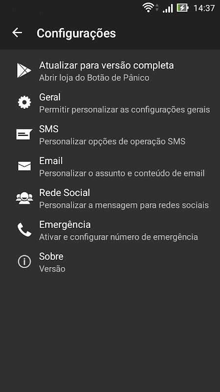 - Quantidade ilimitada de contatos de pânico (telefone e email de contatos)