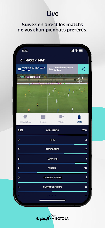 Aplikacja, która umożliwia oglądanie wszystkich meczów Botoli w transmisji na żywo, sprawdzanie wyników i programu tych rozgrywek, dostęp do aktualności z marokańskiej piłki nożnej oraz dostęp do nowych treści wideo o piłce nożnej.