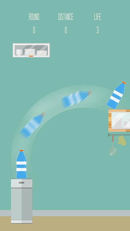 Flip a water bottle onto the platform to get score,so easy? Difficulty level is getting higher now!! To get score by flipping bottle onto the platform of other object while bottom perfectly landing on surface.