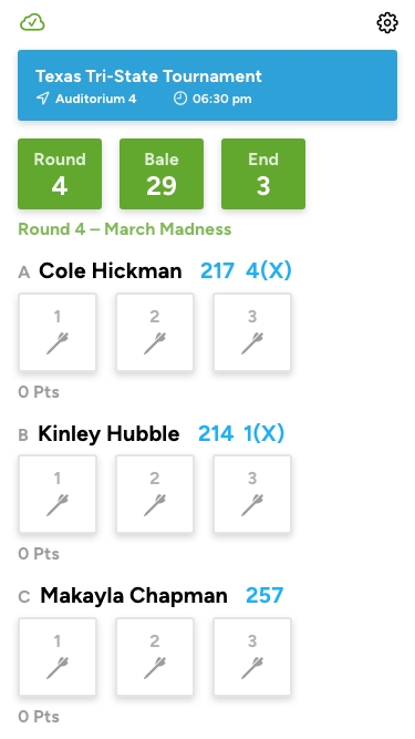 Najłatwiejszy sposób na zdobywanie punktów w turniejach łuczniczych. Łucznicy mogą sami zdobywać punkty, rodzice mogą przeglądać wyniki na żywo na naszej stronie internetowej, a dyrektorzy turniejów mogą śledzić postęp wydarzeń w czasie rzeczywistym. Tworzenie wydarzeń i rejestracja są dostępne na stronie Bowscore.com.